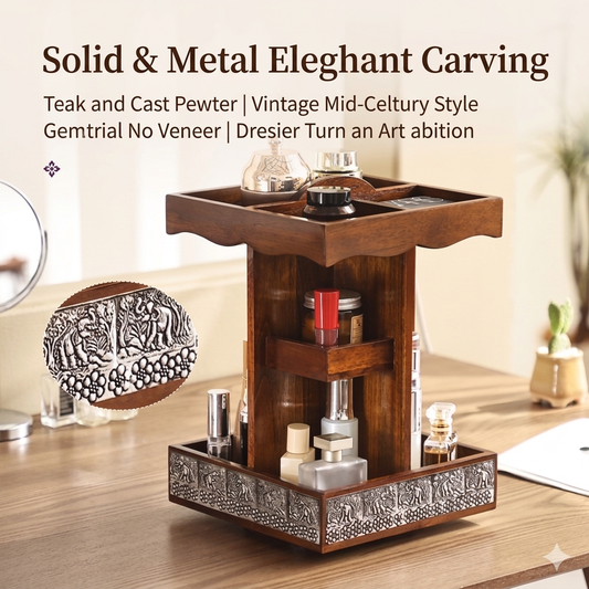 Artisan Solid Wood Rotating Vanity Organizer | Hand-Carv...