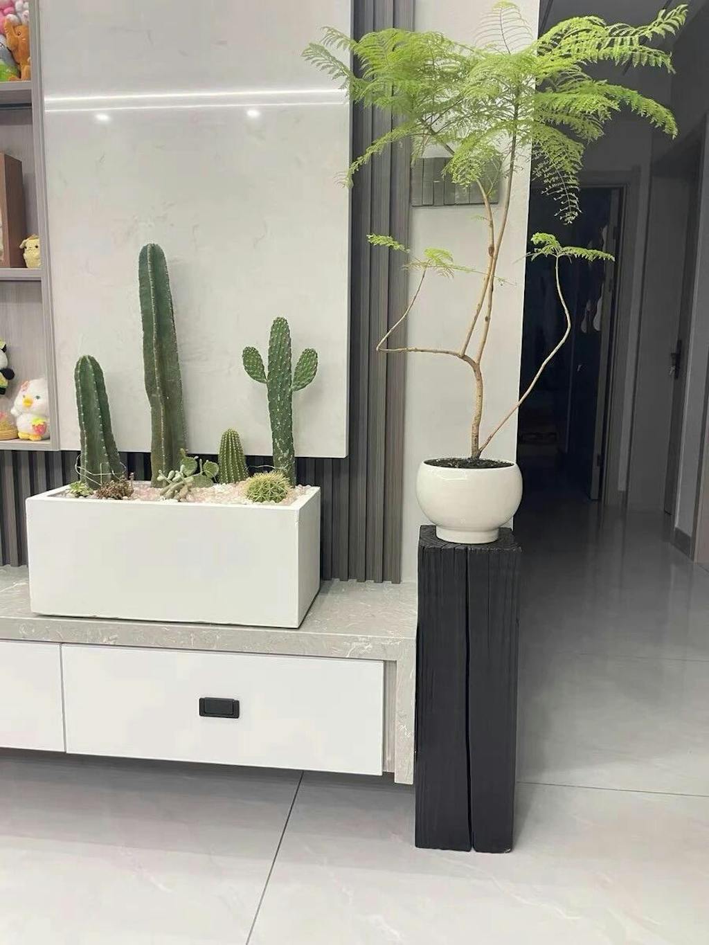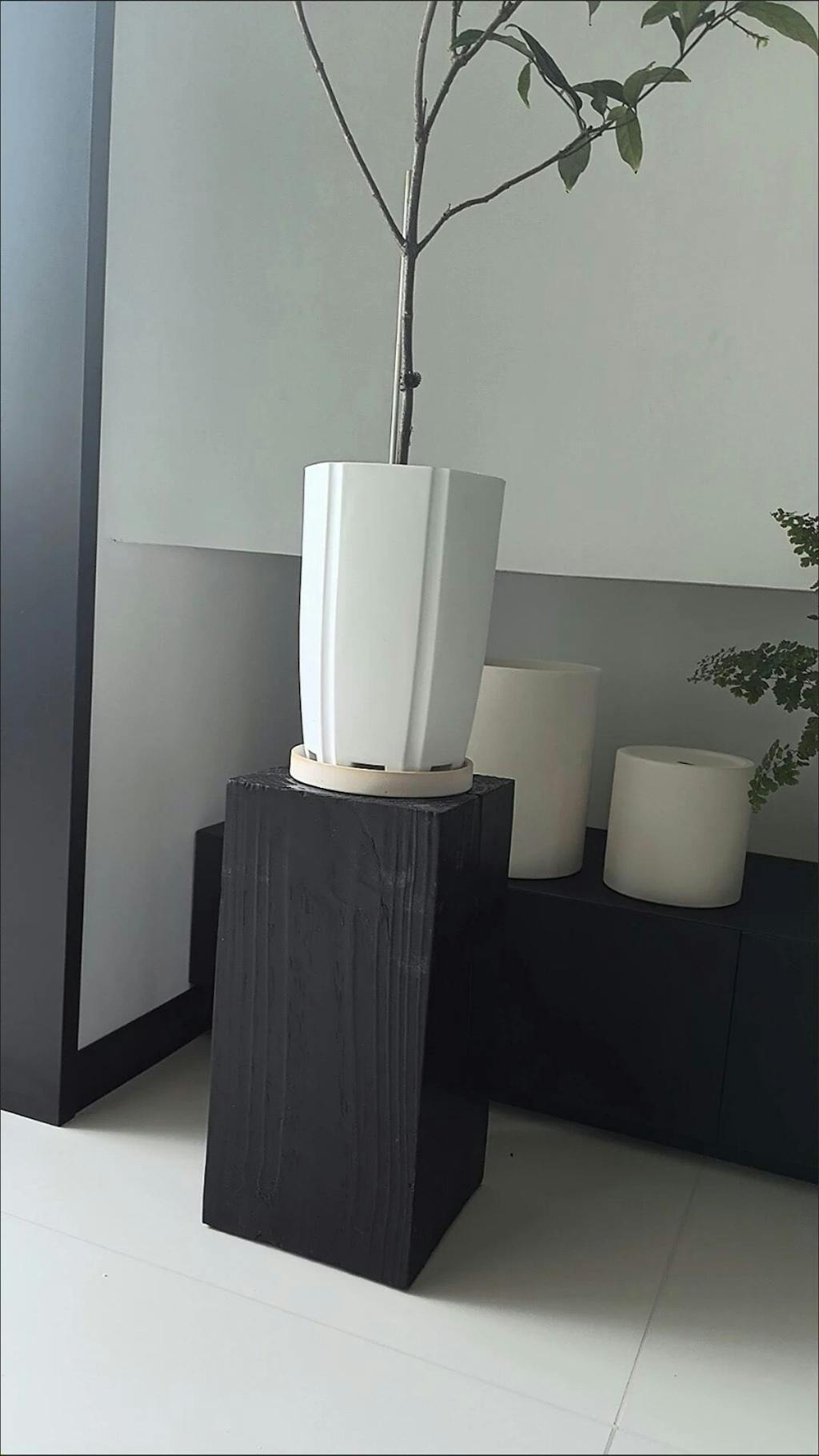 Whether styled as a plant stand, sculpture base, or decorative accent, this minimalist wood plinth brings a blend of modern, rustic, and wabi-sabi aesthetics to homes, galleries, and retail spaces.