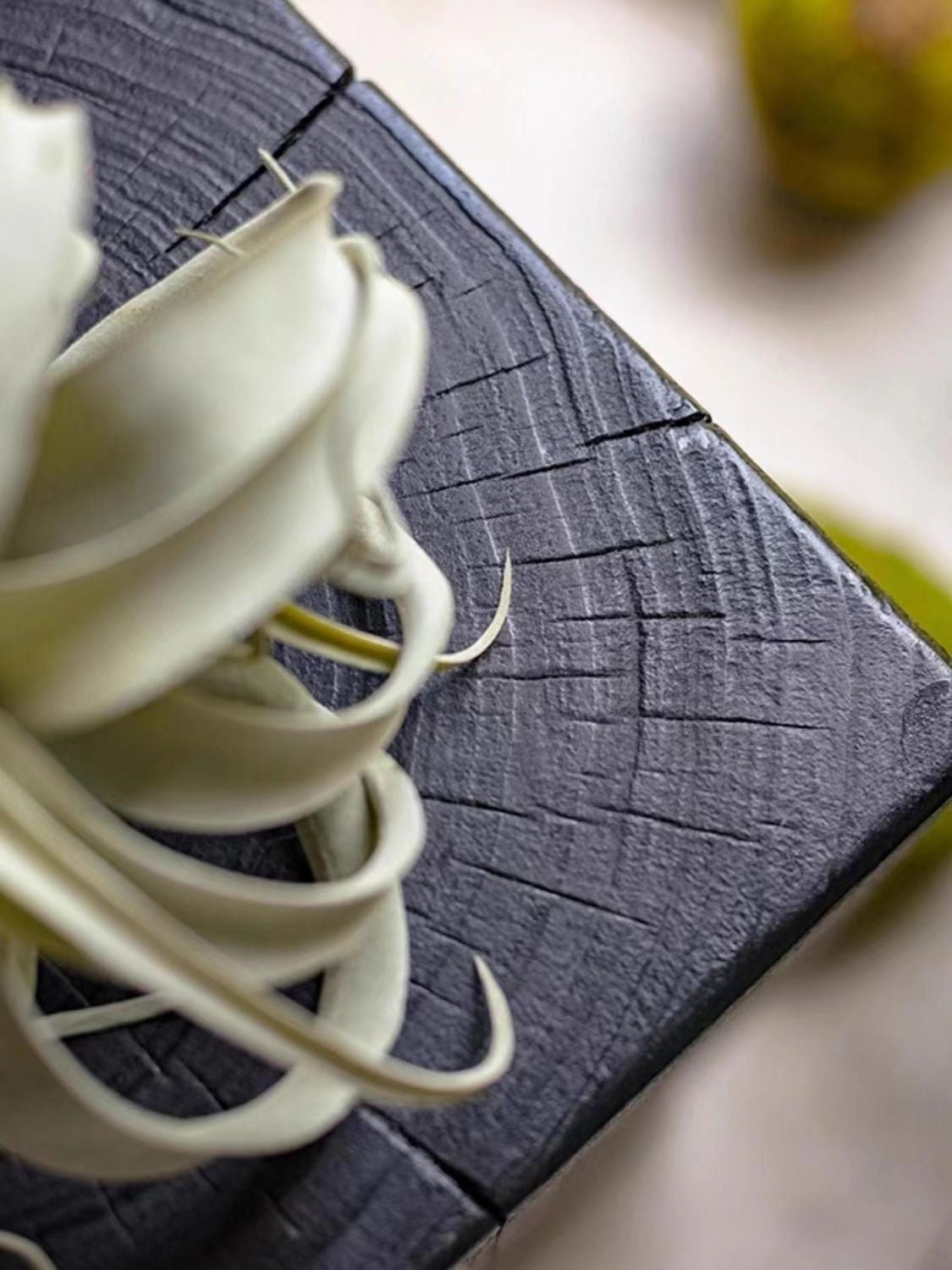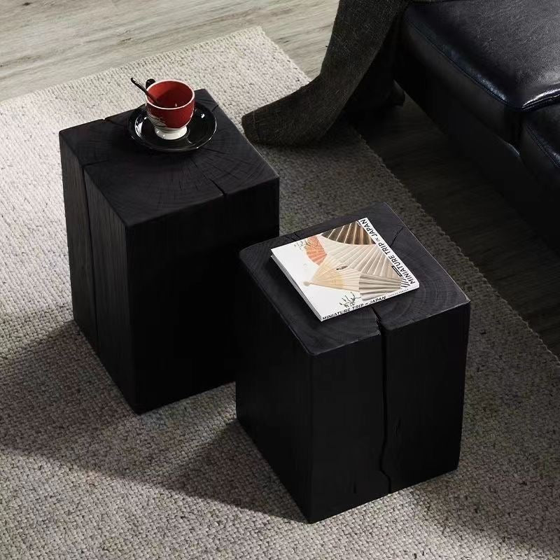 Elevate your interior with the bold elegance of our Shou Sugi Ban wood plinth, a handcrafted pedestal created using traditional Japanese carbonization (Yakisugi) techniques. The fire-treating process enhances both beauty and durability — resulting in a striking blackened finish that highlights the natural wood grain and textures.