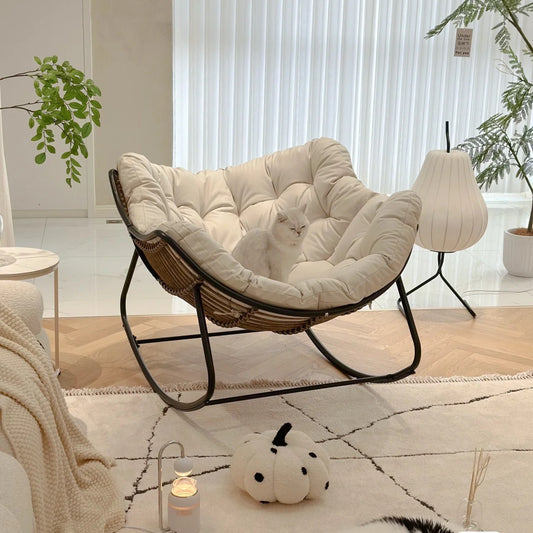 Outdoor Papasan Rattan Rocking Chair with Soft Cushion