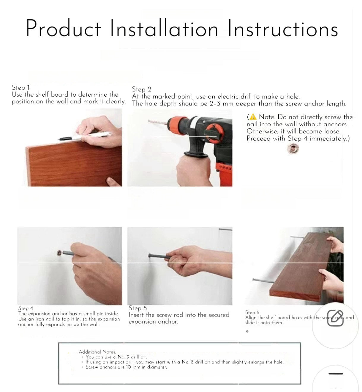 Every shelf comes with the hardware you need for a clean, floating look. Strong and reliable for everyday use.