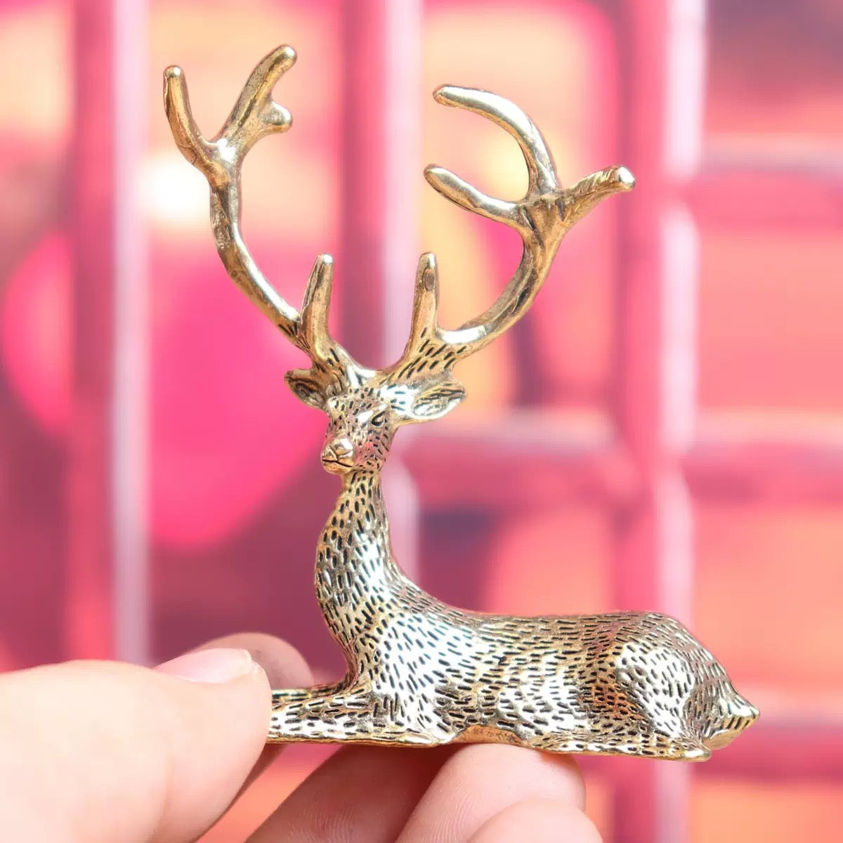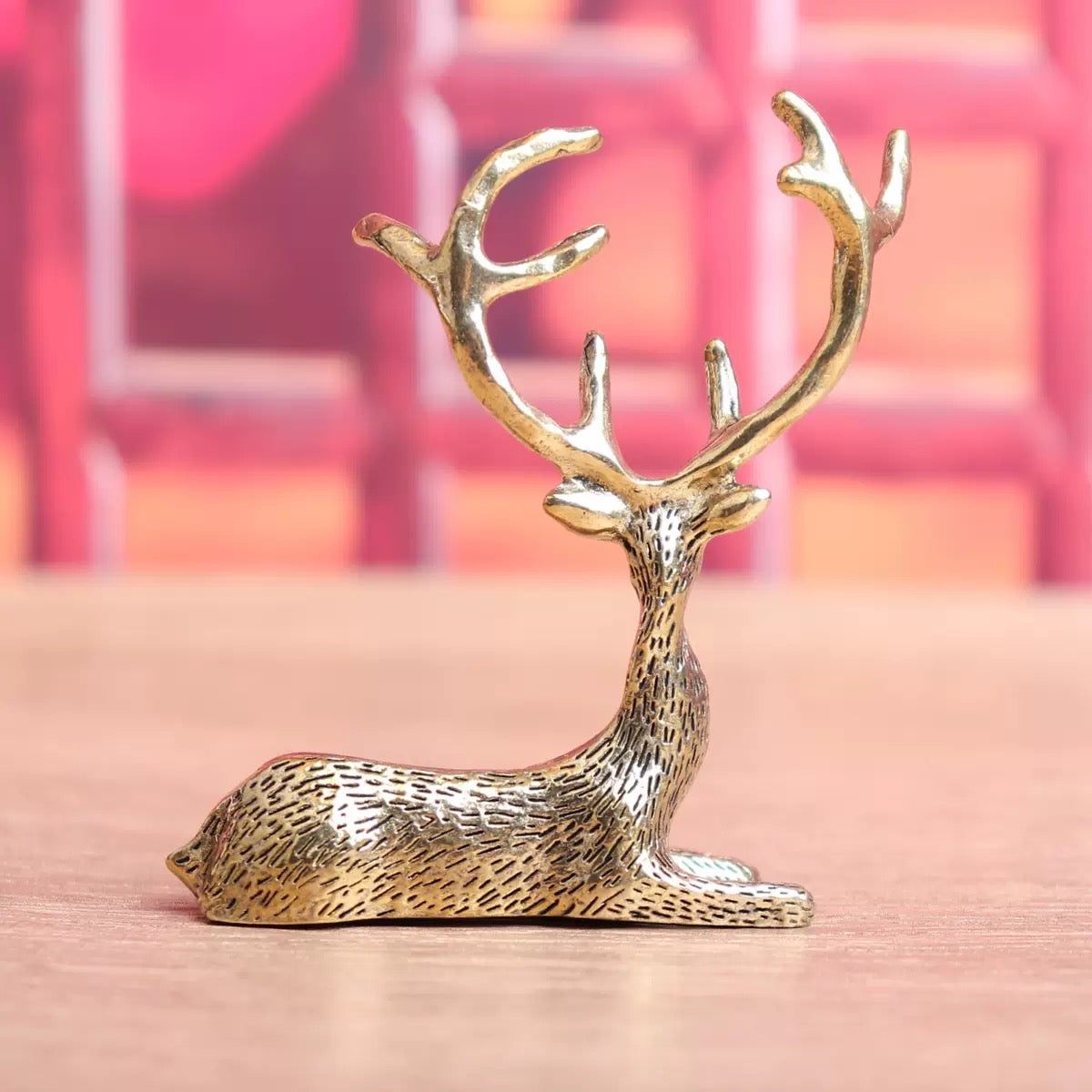Miniature Brass Stag Figurine – Elegant Resting Deer Statue for Home & Holiday Decor