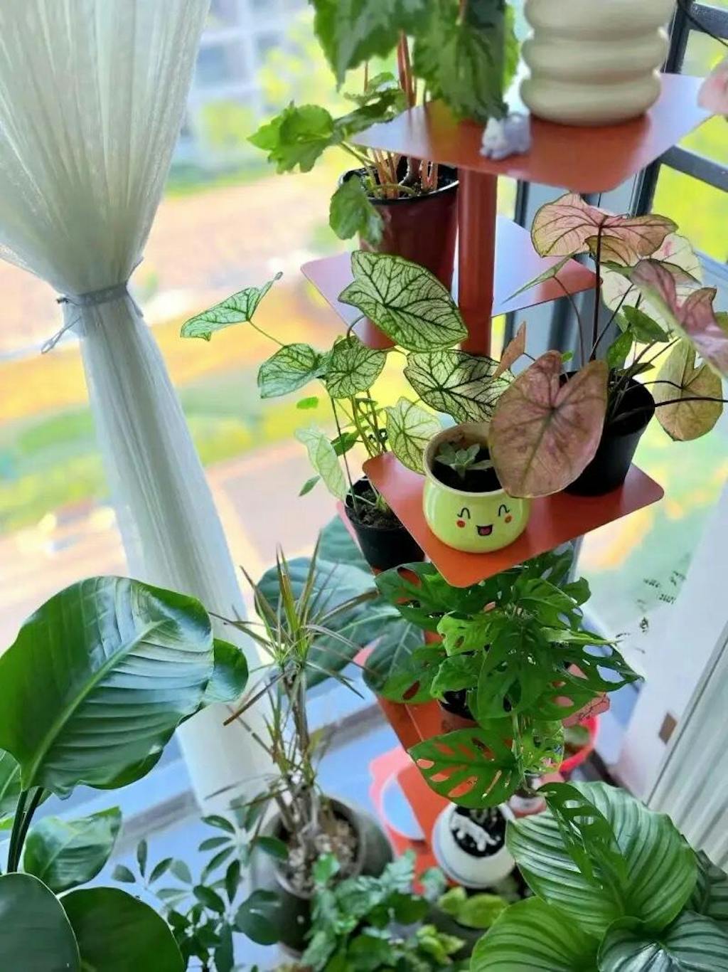 Multi-Tier Shelving – Features 8 staggered shelves for books, plants, or decor.