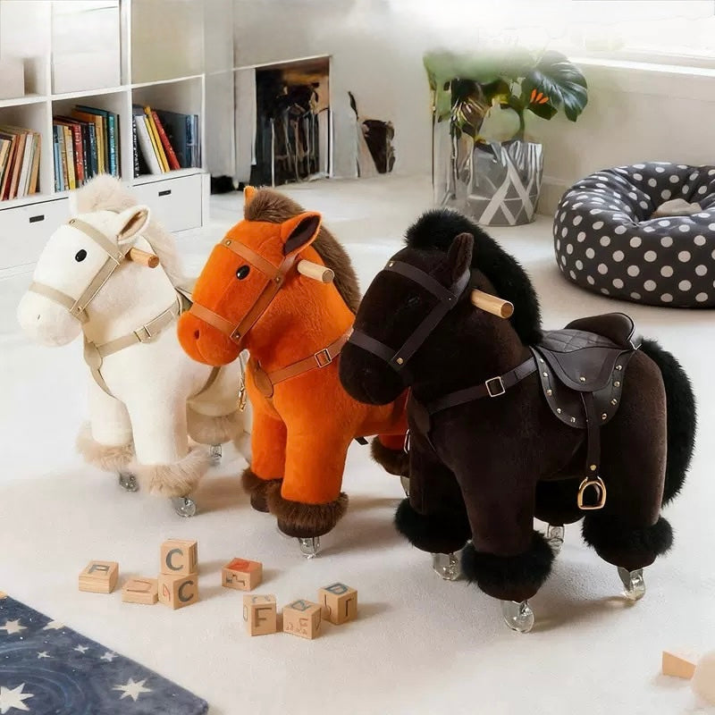 Bring the magic of the stable into your playroom! Our Plush Pony Pal combines the cuddly comfort of a stuffed animal with the high-energy fun of a ride-on toy. Designed for toddlers and young adventurers, these ponies are built for smooth "galloping" across flat surfaces.