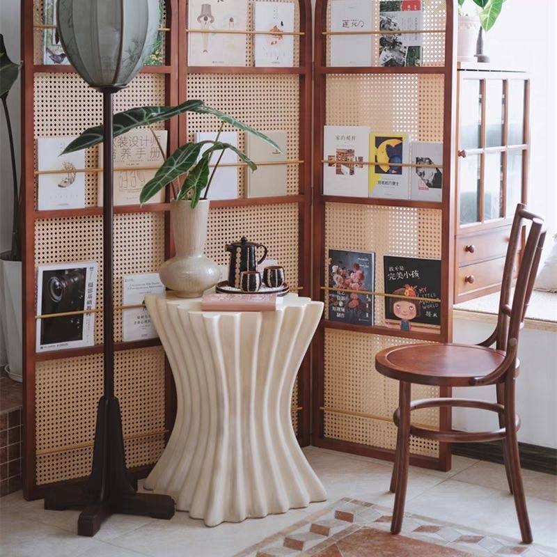 Sculptural Pedestal Side Table – Wavy Accent Table Stool for Modern Interiors