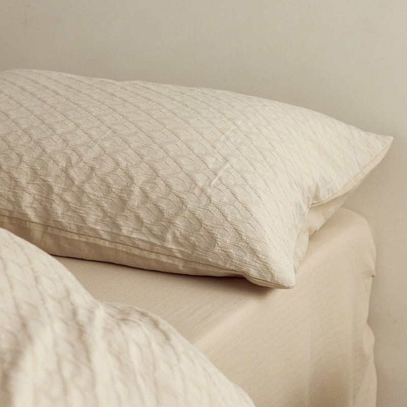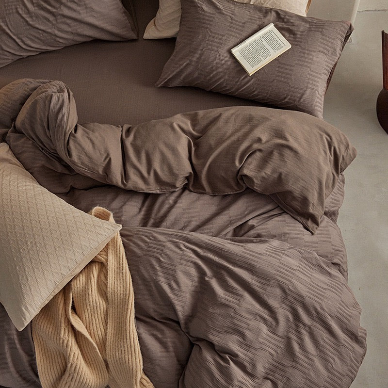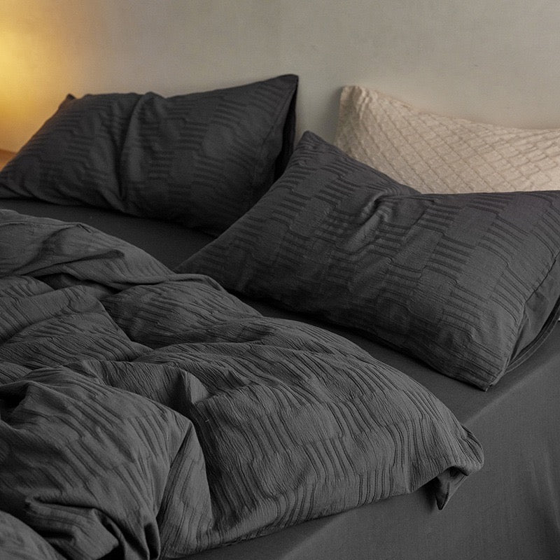 Bring comfort and calm into your bedroom with our Soft Washed Cotton 4-Piece Bedding Set. Designed with a minimalist aesthetic and soothing solid colors, this set features a luxuriously soft texture and breathable weave that only gets better with time. Made from 100% pure cotton with a textured jacquard or bubble gauze finish, it’s the perfect blend of elegance and everyday ease.