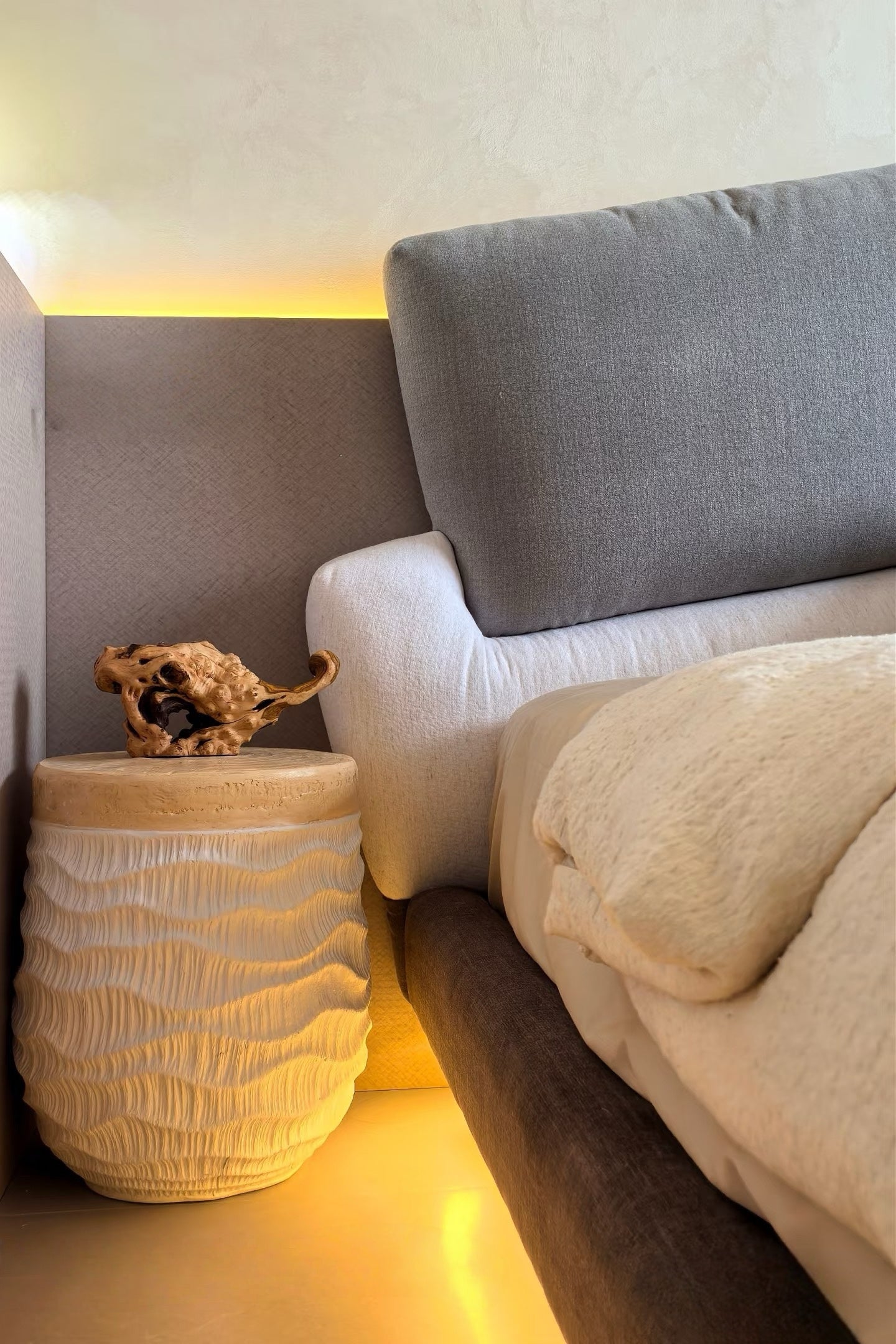 - Handcrafted Design – Unique sculpted base with wave-textured surface
