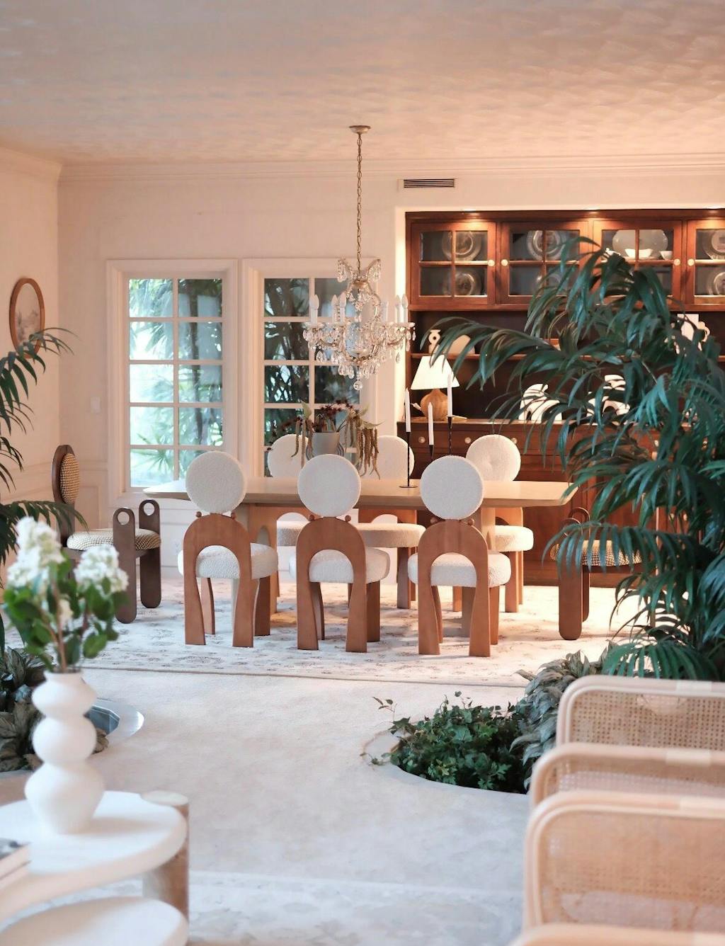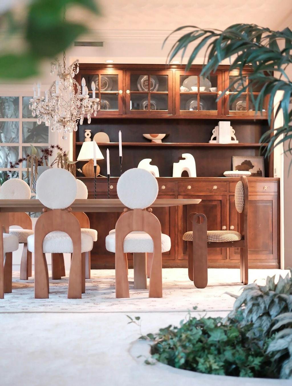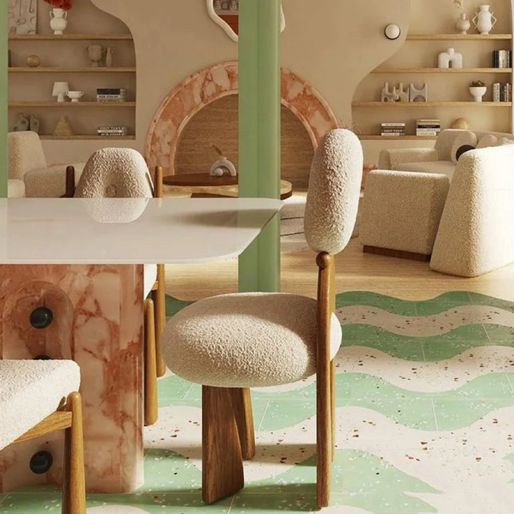 Enhance your home with this Luxury Bouclé Dining Chair, a statement piece that combines artistic design with cozy comfort. Featuring a sculptural wooden frame and plush bouclé upholstery, this chair offers both elegance and functionality for dining spaces, vanities, or accent seating.