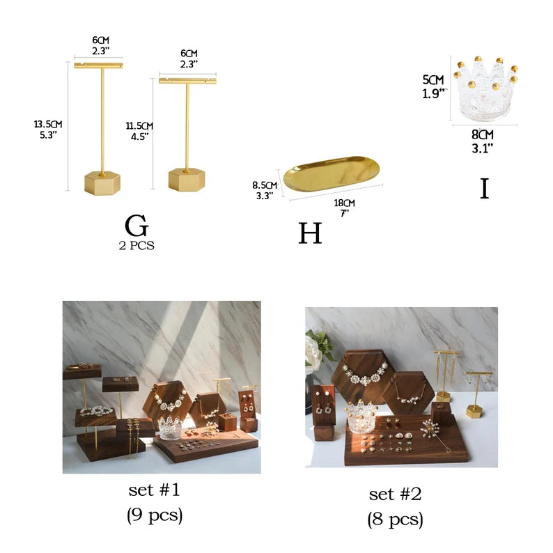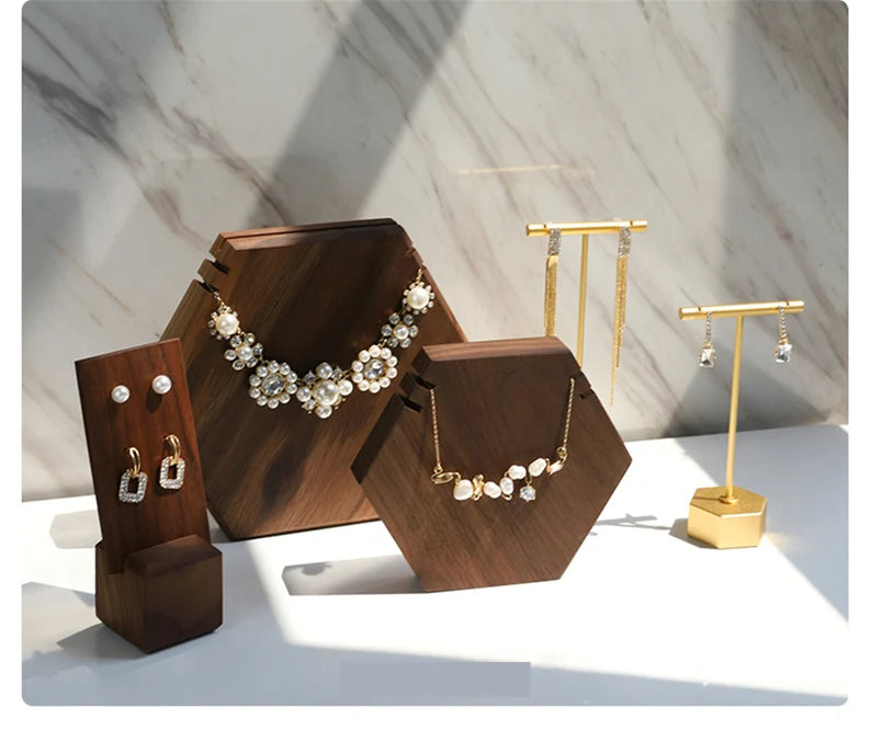 Wooden Jewelry Display Stand Set – Ring, Necklace, Earring Organizers for Retail & Home