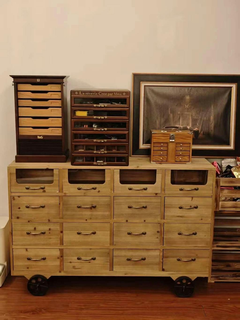 Bring timeless character into your space with this vintage multi-drawer wooden cabinet, thoughtfully crafted from solid wood and finished with a natural rustic patina. Designed with 16 drawers of varying sizes, this piece offers both functional storage and a decorative statement, perfect for interiors that celebrate warmth and authenticity.