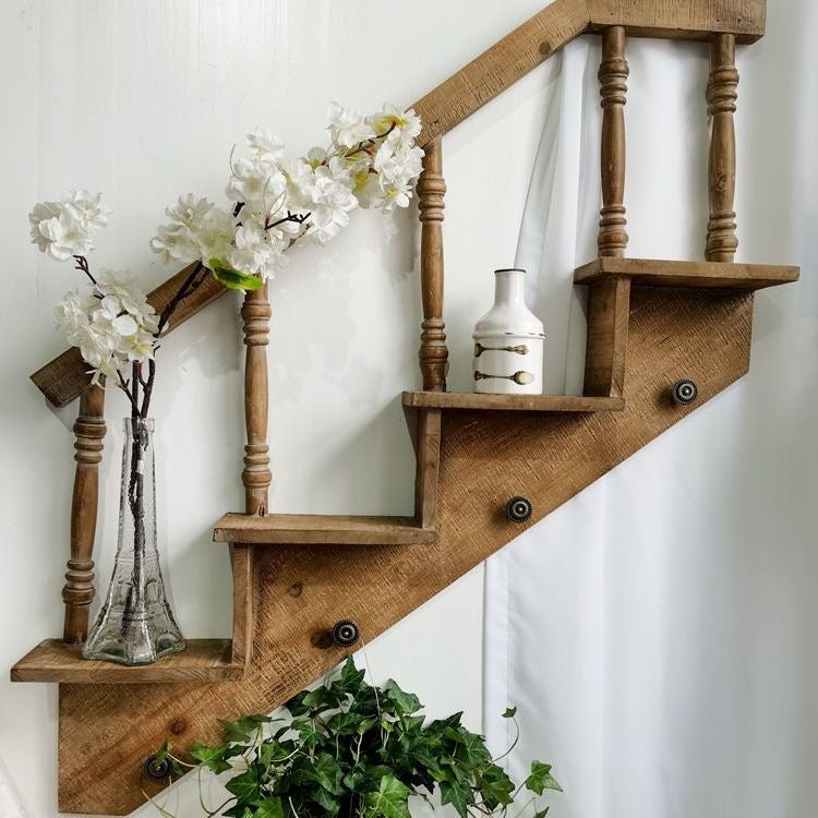 Vintage Staircase Wall Shelf – Rustic Café Display Accent