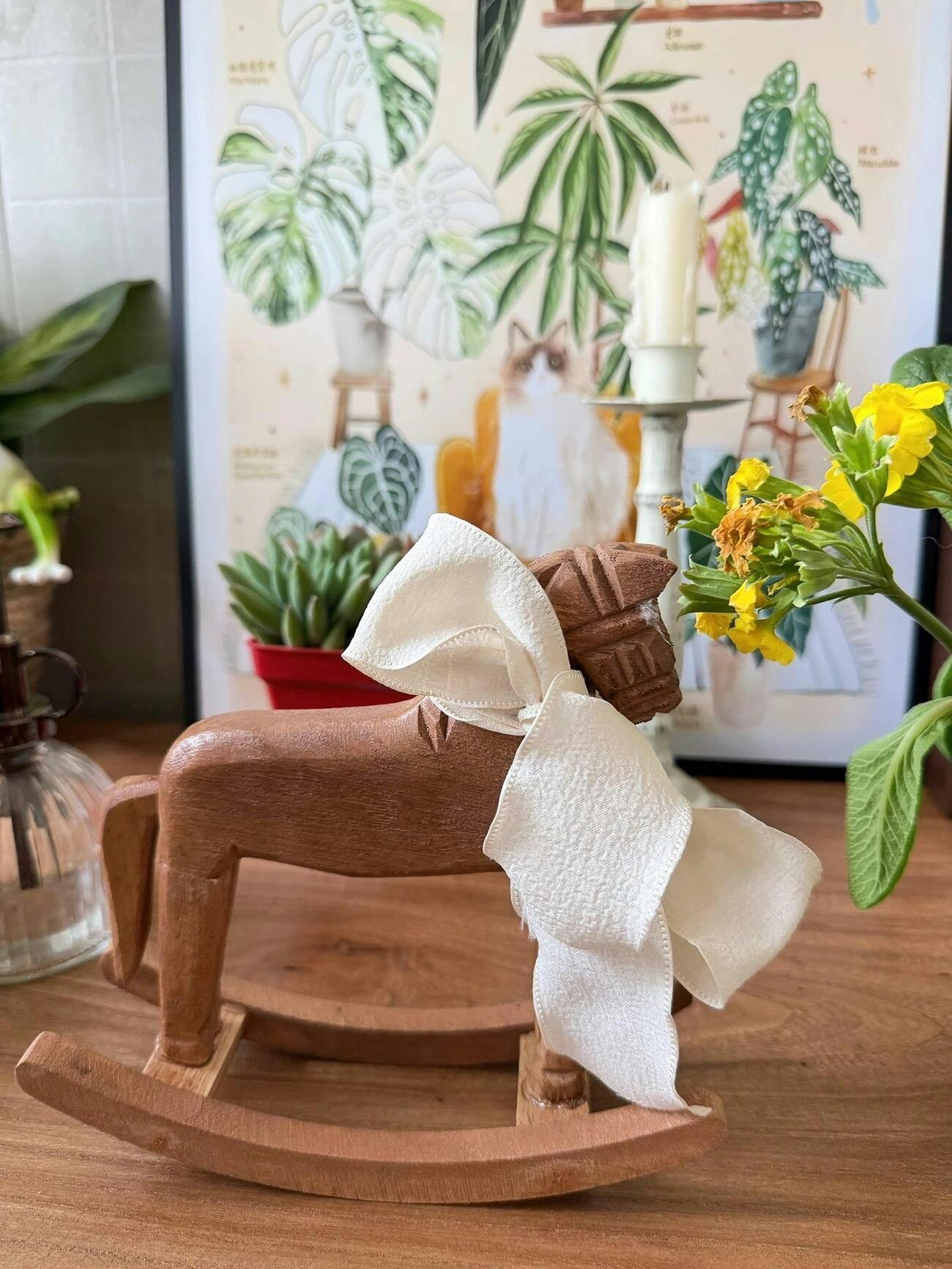 Includes: 1 wooden rocking horse with a ribbon bow