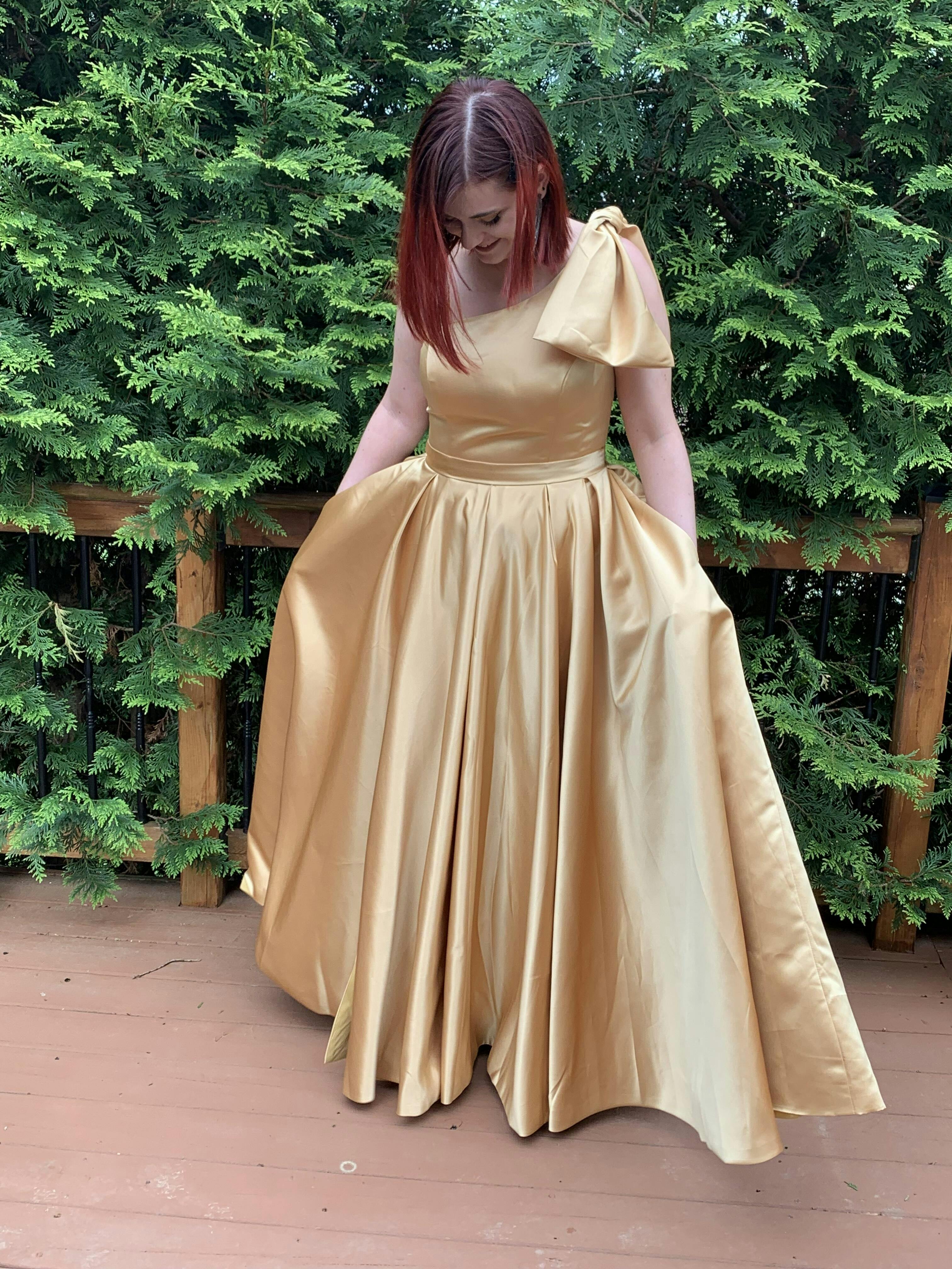 Yellow satin long prom dress, yellow evening dress